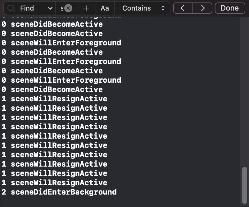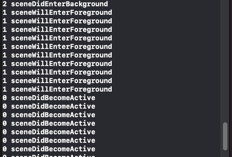 실험 방법 > SceneDelegate에서 UI State 변경 시 불리는 메소드들로 UI State를 print()로 찍어봤다.