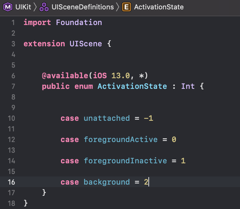 print(scene.activationState.rawValue, "sceneDidEnterBackground")