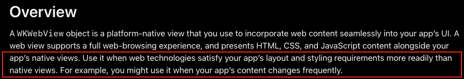 Apple 문서 - https://developer.apple.com/documentation/webkit/wkwebview