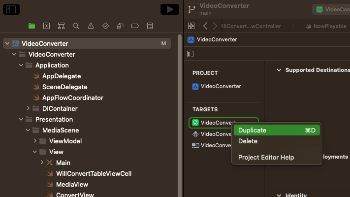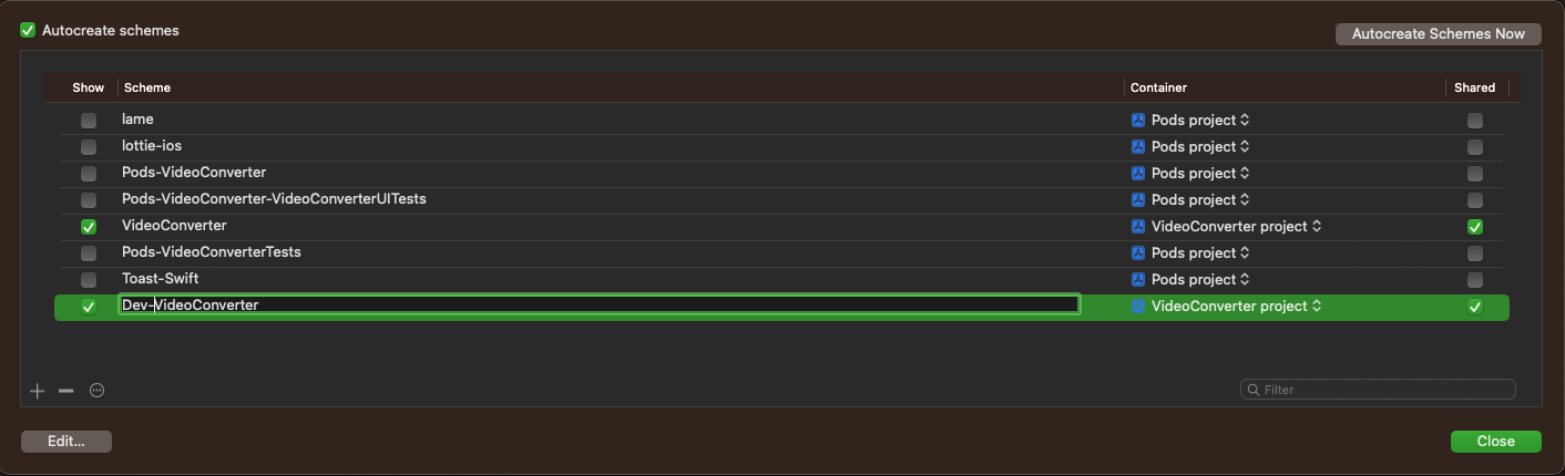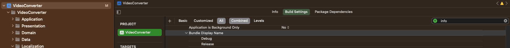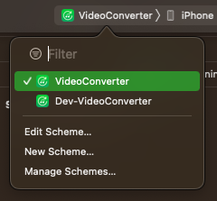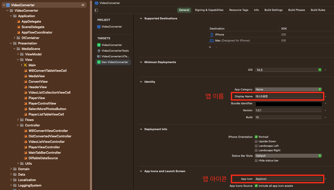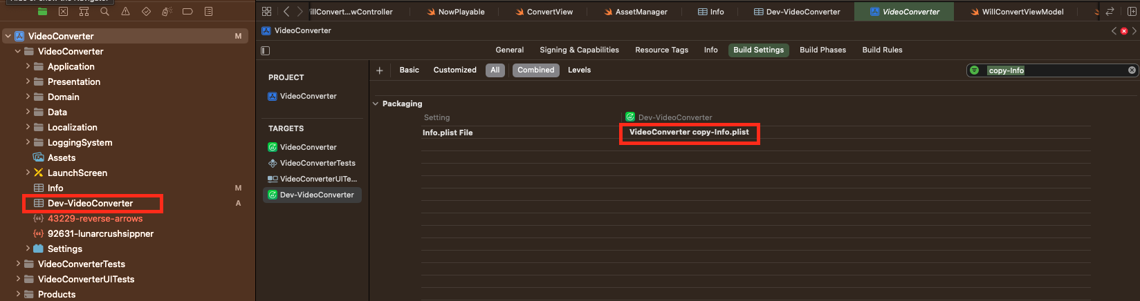 아 근데 개발용 info.plist 이름이 Dev-VideoConverter 가 아니라 처음에 복제했을 때 그대로네요.