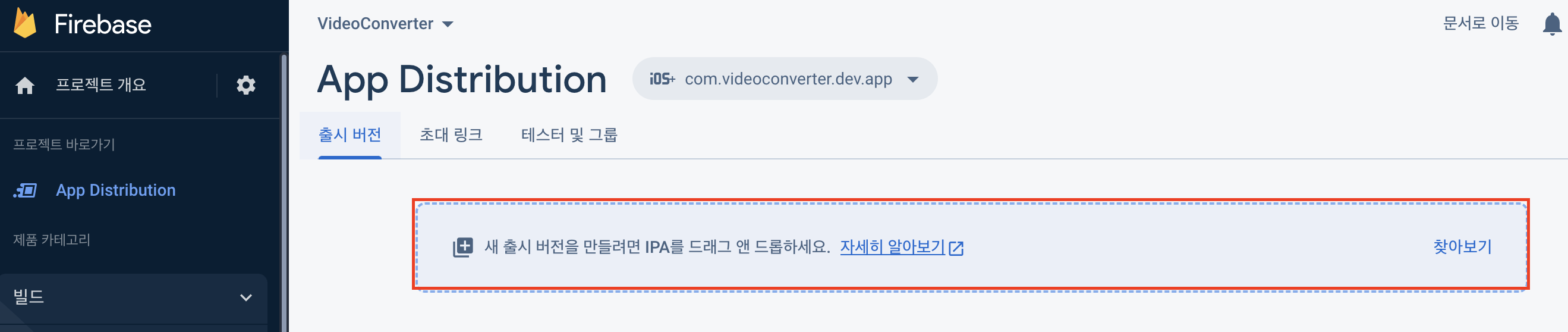 보통 iOS 같은 경우 테스트플라이트나 앱스토어에 App을 배포하는데 Firebase Distribution 은 Firebase에 .ipa 파일을 업로드 하는 것.