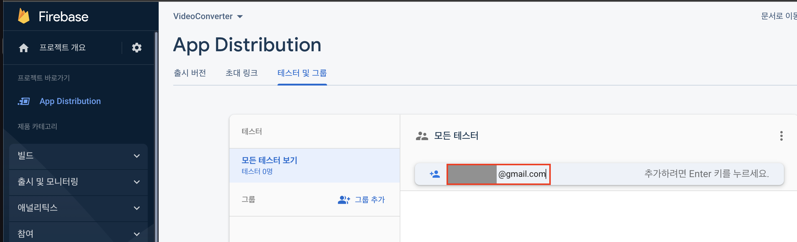 저는 제 테스터로 제 이메일을 추가해 볼게요.