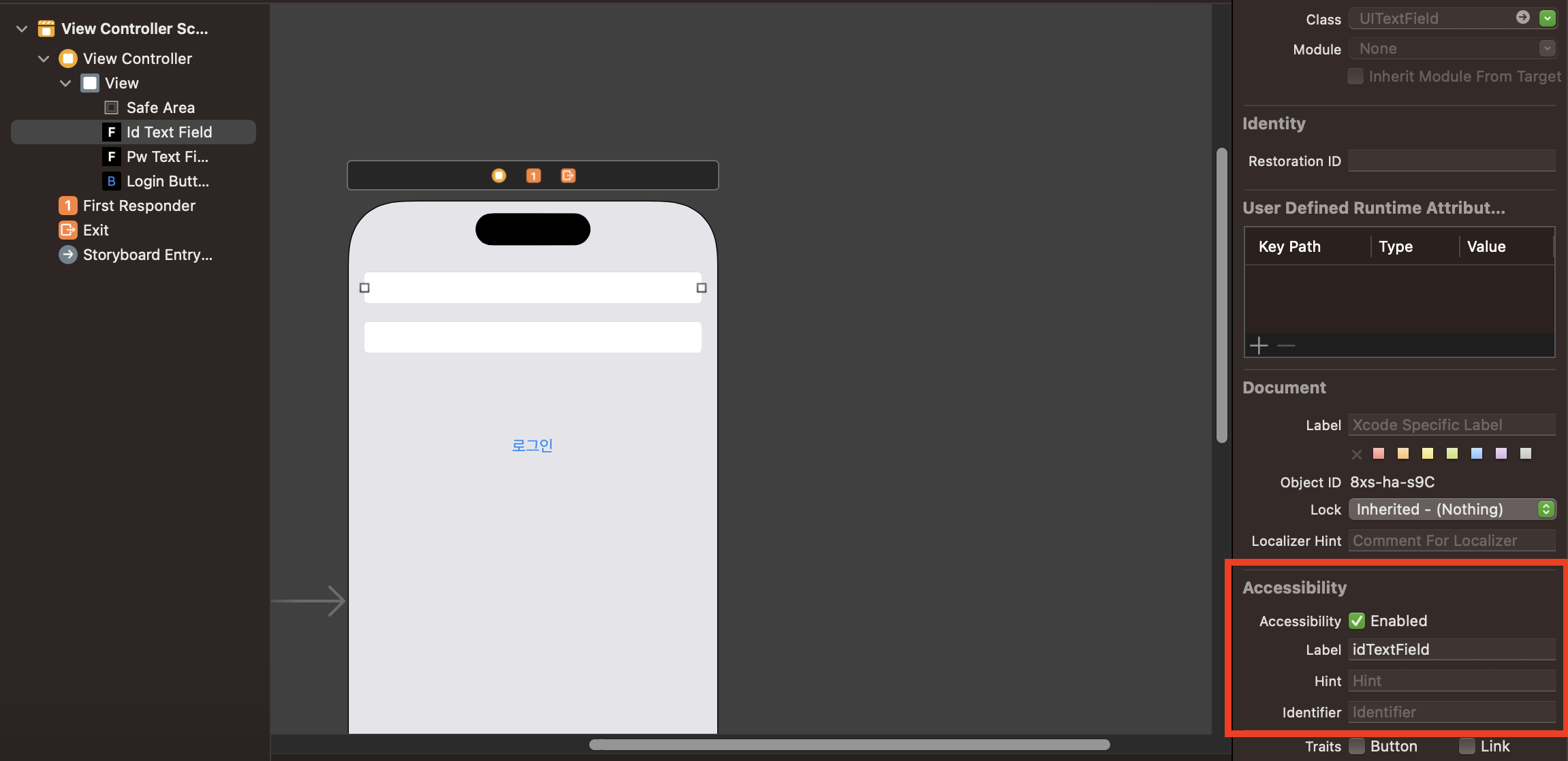 | Label '로그인라벨', Identifier 'loginButton'로 적었을 때 |