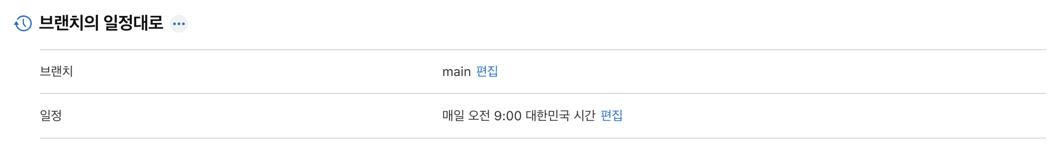 매일 오전 09시에 main 브랜치에서 테스트하도록 설정해 보겠습니다.