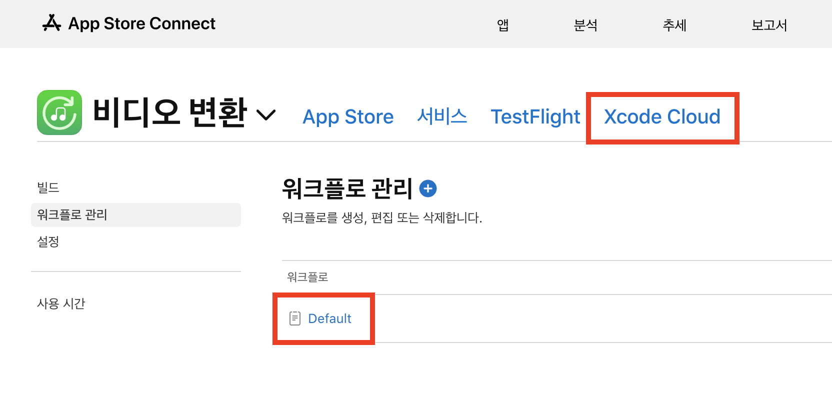 앱스토어 커넥트 Xcode Cloud Tap