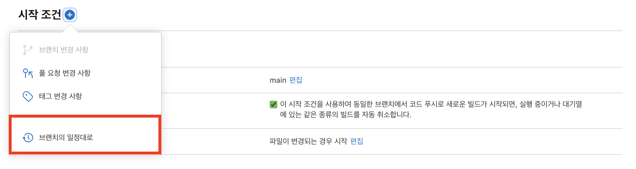 깃 브랜치에 변경사항 있을 때 시작되는 조건도 해봤는데 이건 바로 적용됩니다!