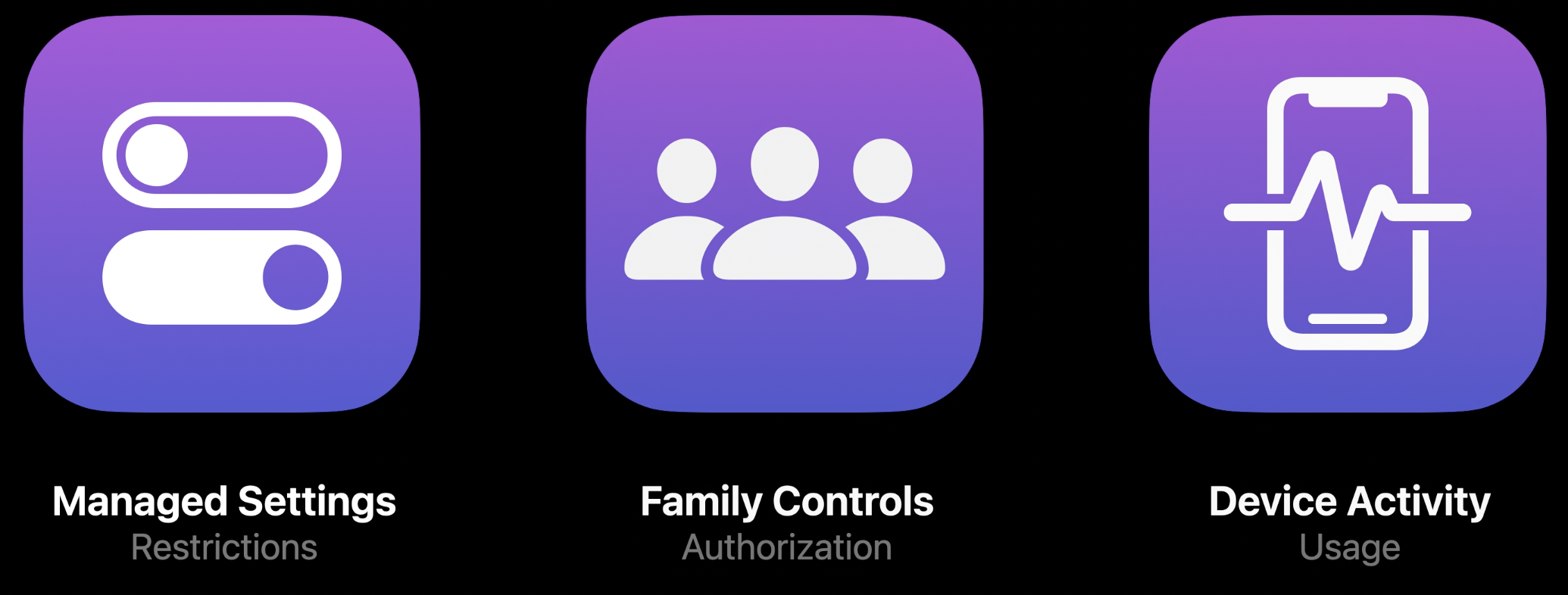 Apple은 이러한 세 가지 원칙을 가지고 Screen Time API를 설계했고, 아래의 3가지 프레임 워크를 만들었습니다.