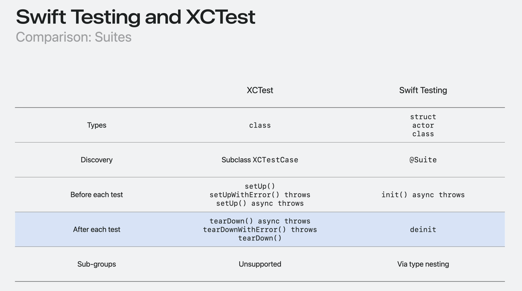 - Swift Testing and XCTest